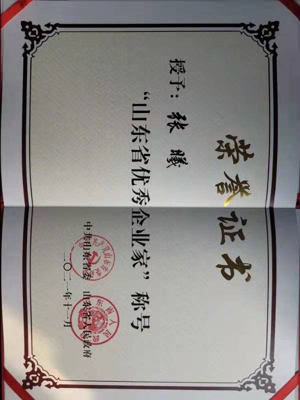 我司董事长荣获“山东省优秀企业家”荣誉称号