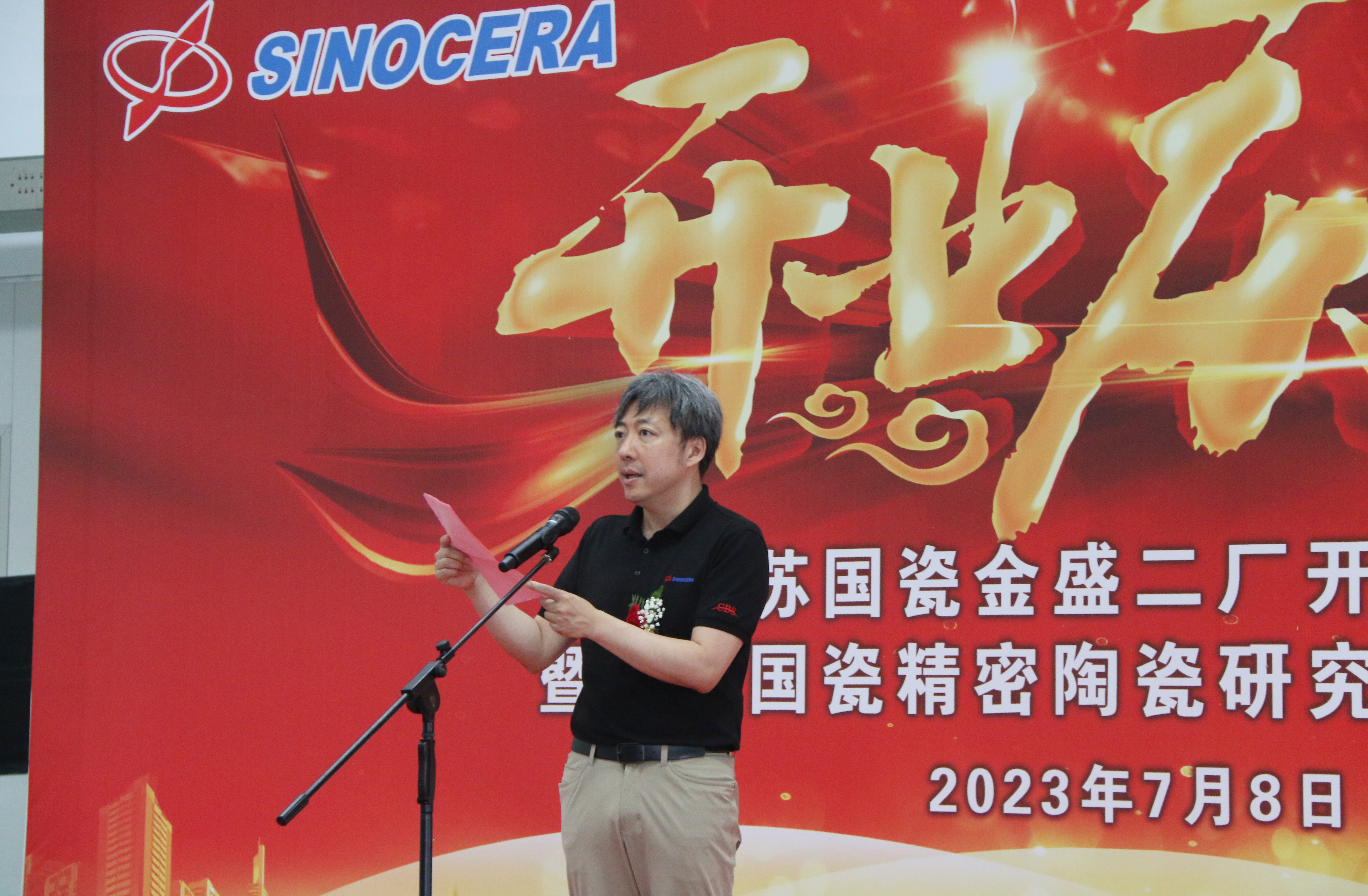 7月8日,江苏国瓷金盛二厂开业庆典暨江苏国瓷精密陶瓷研究院揭牌仪式在常州金坛隆重举行。江苏金坛区委常委、金坛经开区党工委书记杨健,金坛经开区管委会副主任束鸣东,金坛经开区管委会科技金融局副局长蒋伟明,金坛经开区管委会投促中心处长芮瑞,江苏金坛金城科技产业有限公司总经理张国庆,副总经理赵国强,国瓷材料董事长张曦,总经理霍希云,副总经理、董事会秘书许少梅,副总经理、江苏国瓷金盛总经理莫雪魁,国瓷赛创电气总经理于正国、技术总监徐浩然等出席仪式。